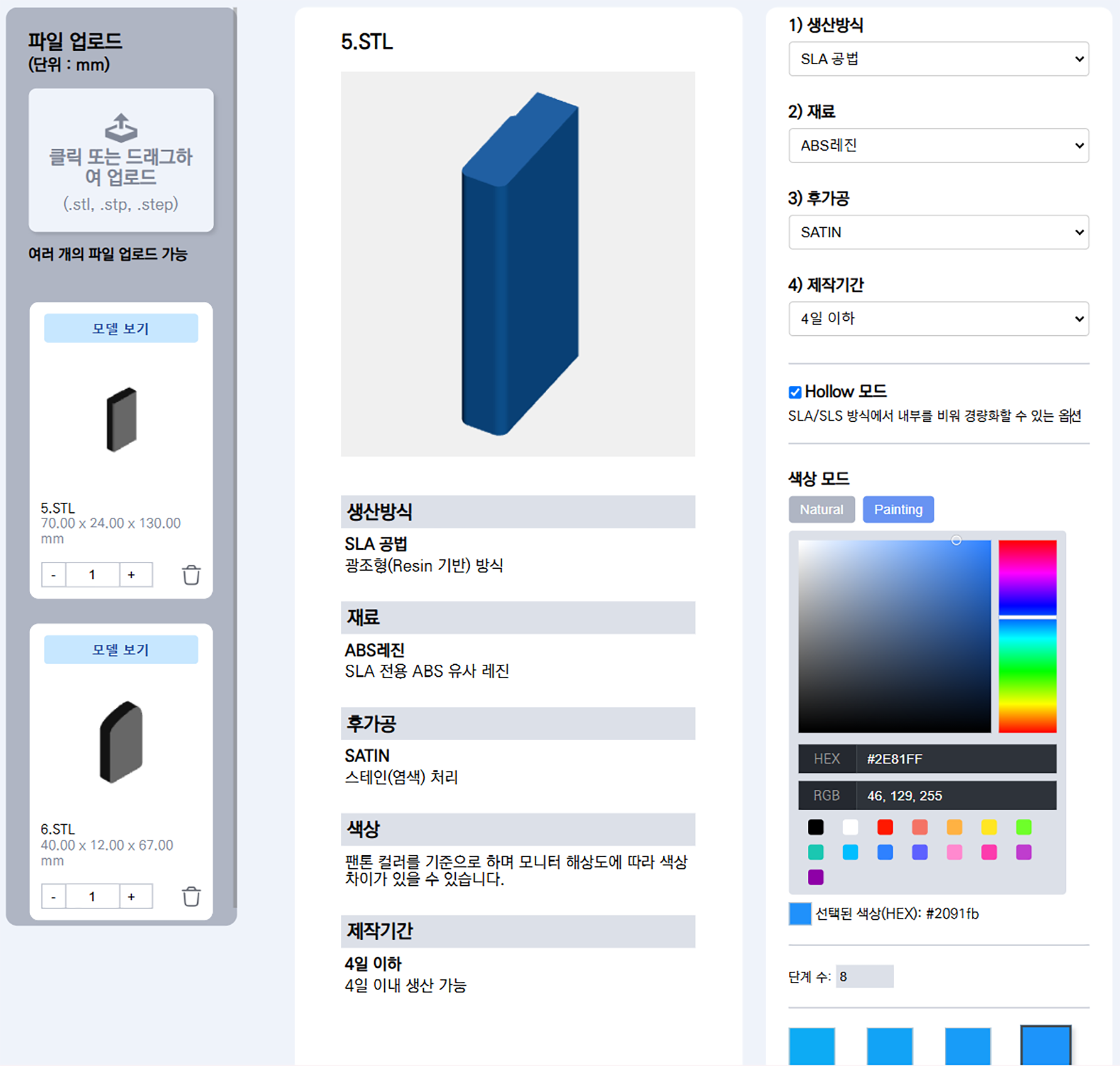 MPNITE offers not only single-color prints but also multi-color and material options for your 3D models. Upload your design, select the desired color, texture, and finish, and receive an instant quote with a live preview.